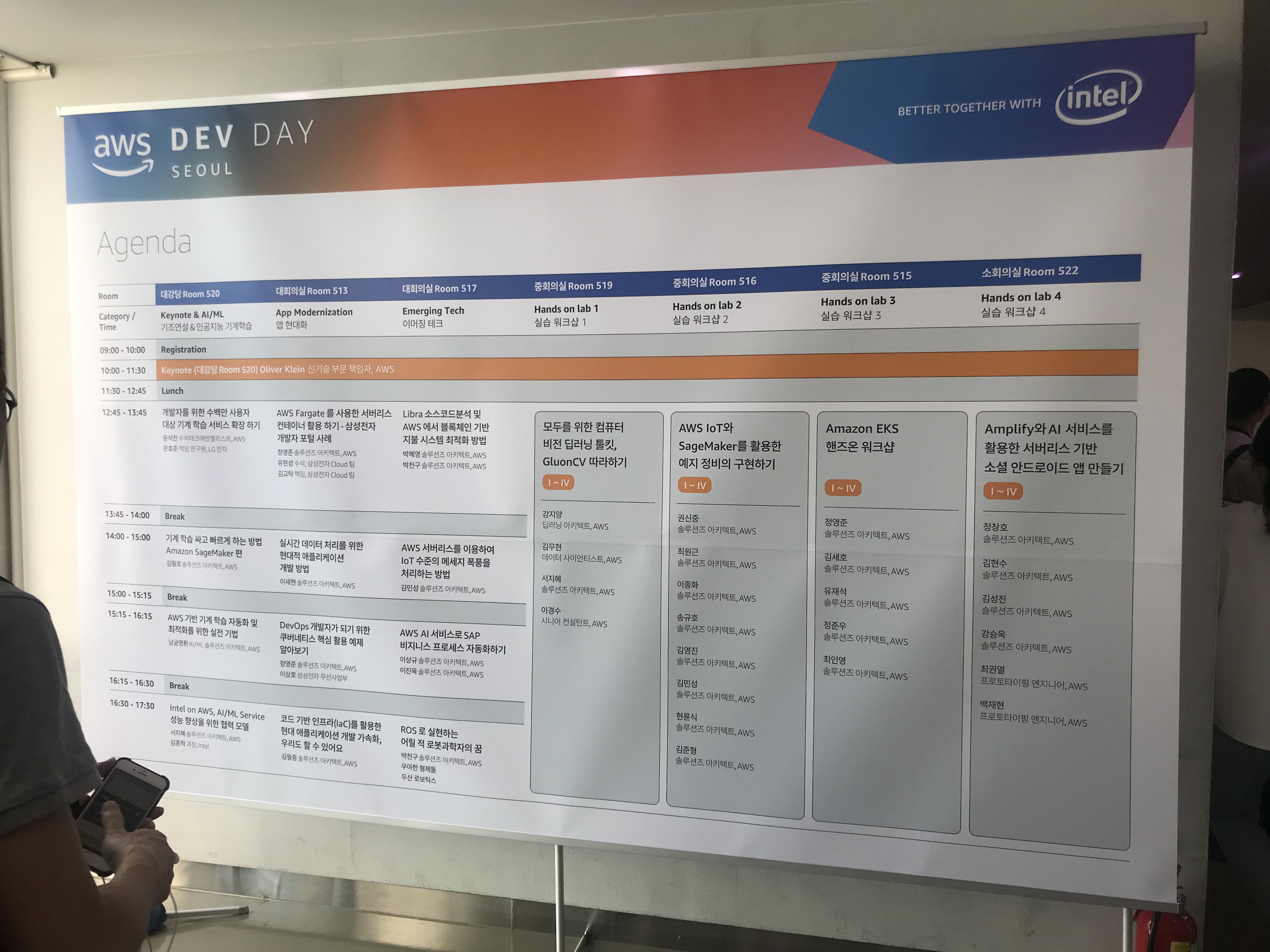 오전은 AWS 신기술 부문 책임자 Olivier Klein의 기조 연설이 있었고, 오후에는 7개의 세션이 각 세미나실에서 열렸다.