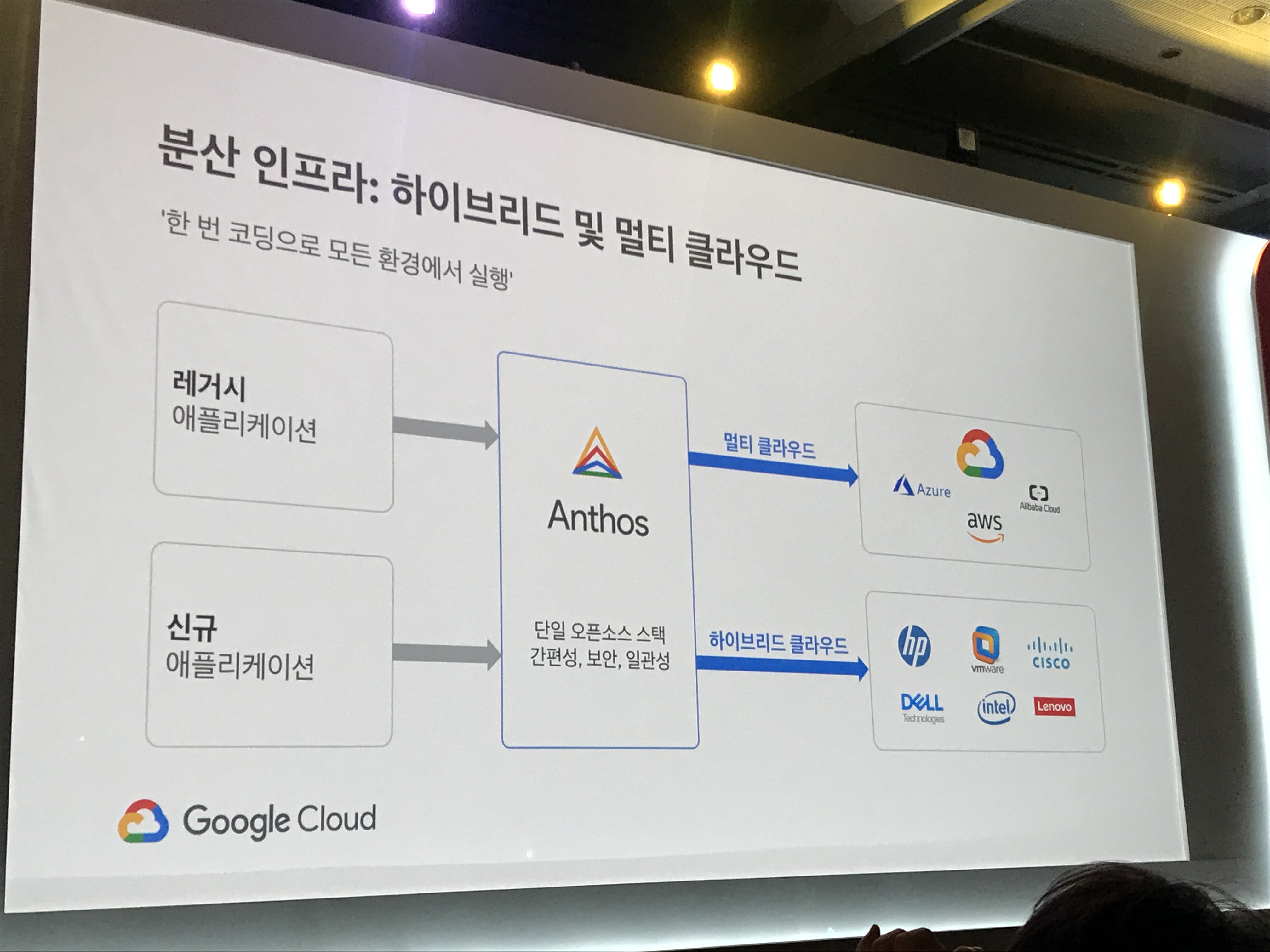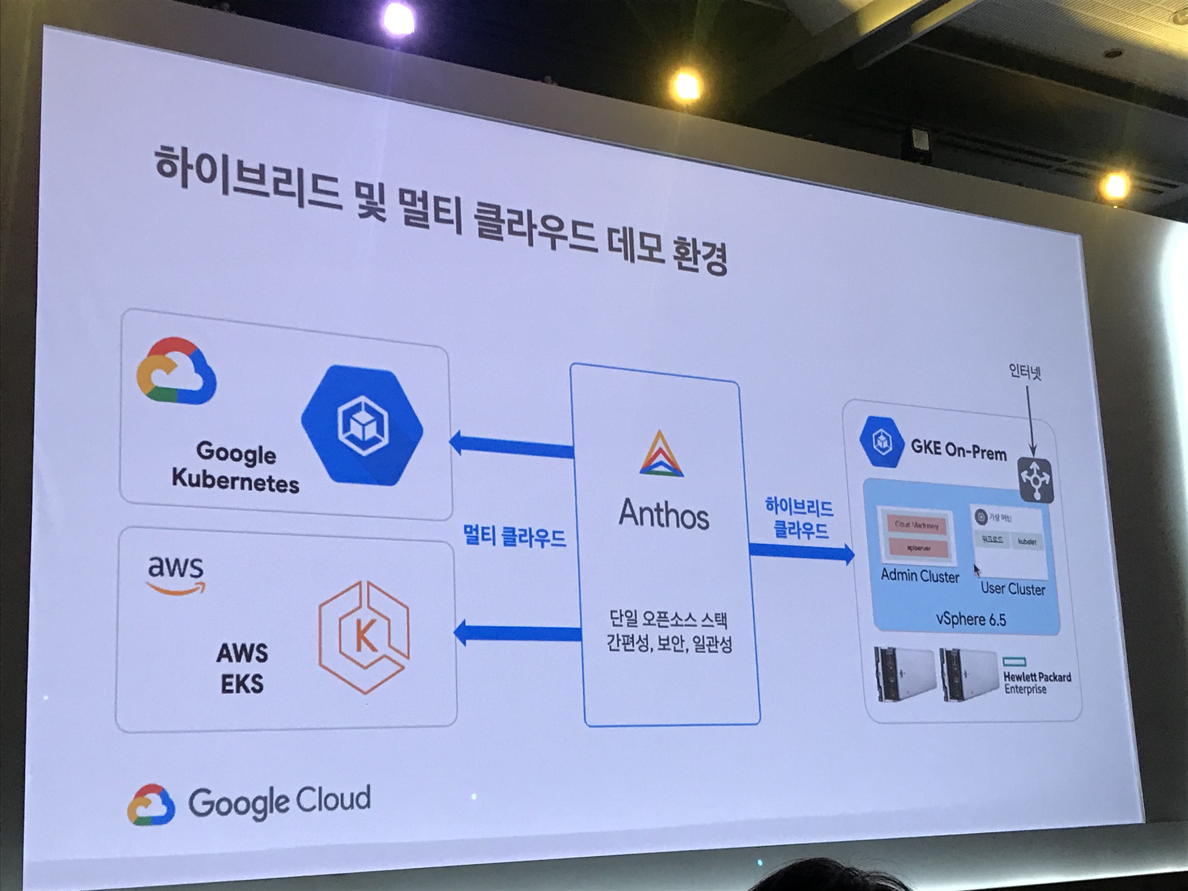 그리고 클라우드에서 이제는 멀티 클라우드, 하이브리드 클라우드로 넘어가는 기업들이 많아졌다. 1개 업체의 클라우드만이 아닌 Google, AWS, Microsoft Azure를 함께 구성할 수 있는 멀티 클라우드, 그리고 Public과 Private를 구성하여 사용하는 하이브리드 클라우드에 대한 얘기가 많았고 이를 구축하고 관리하기 위한 솔루션인 Anthos에 대한 얘기가 많았다.
